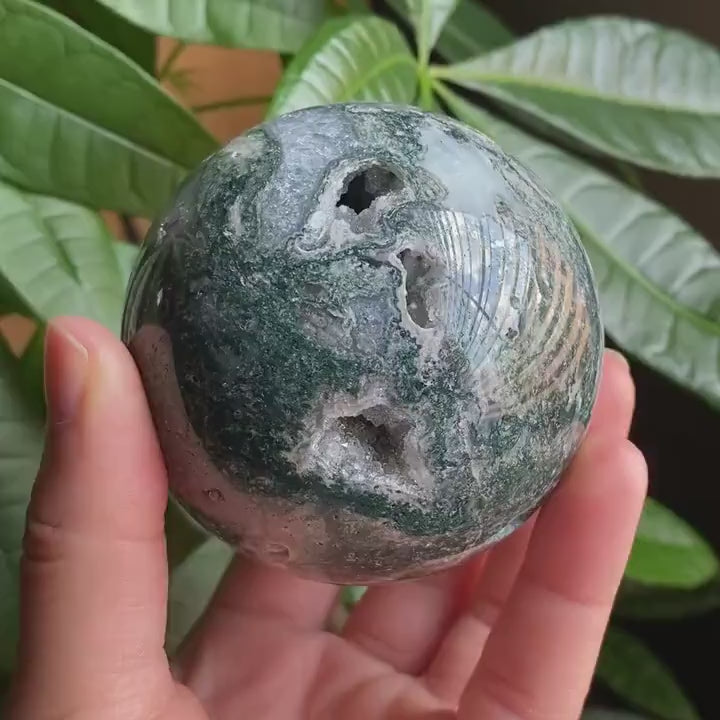 This listing is for one (1) Moss Agate w/ Druzy Sphere. You will receive the crystal sphere pictured.