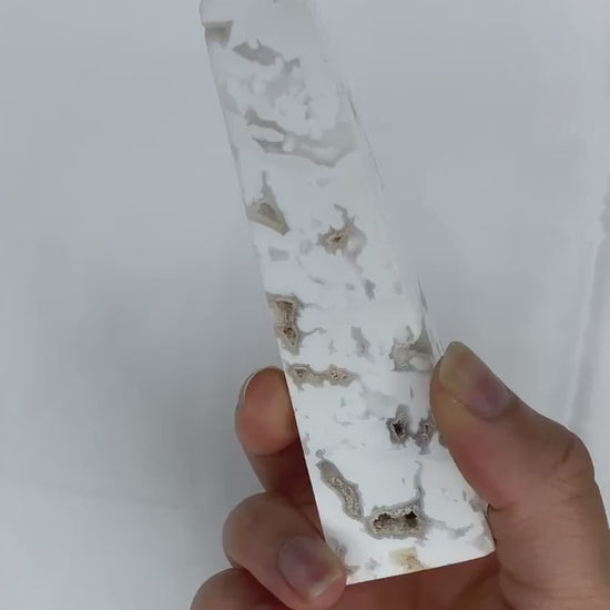 Snow White Druzy Agate Obelisk Tower Crystal, Emotional Balance, Stress Relief, Intuition, Love, Heart Chakra, Crown Chakra